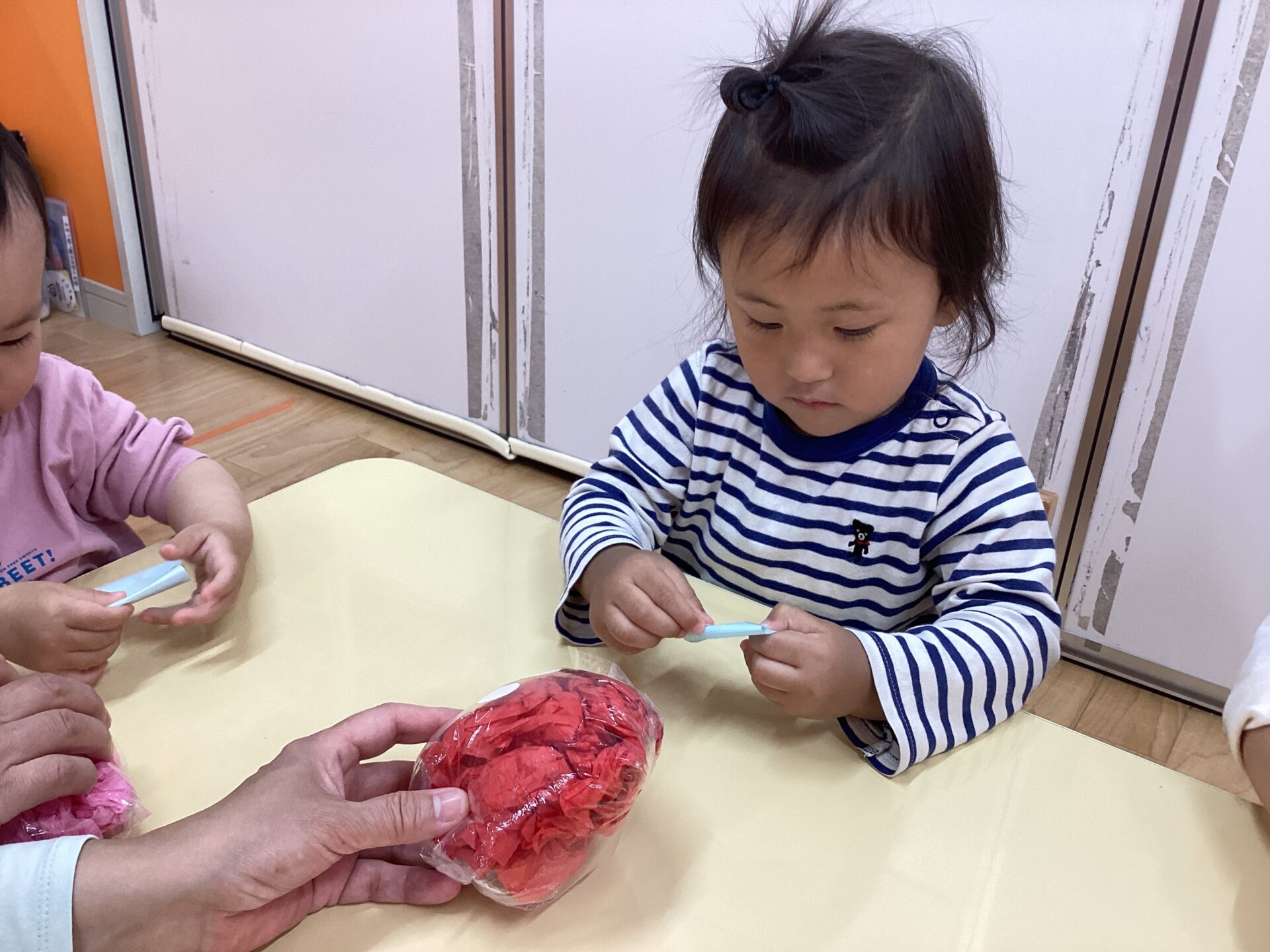 たくさんのお花紙でいっぱいになった袋は、まん丸になってとてもおいしそうでした😋