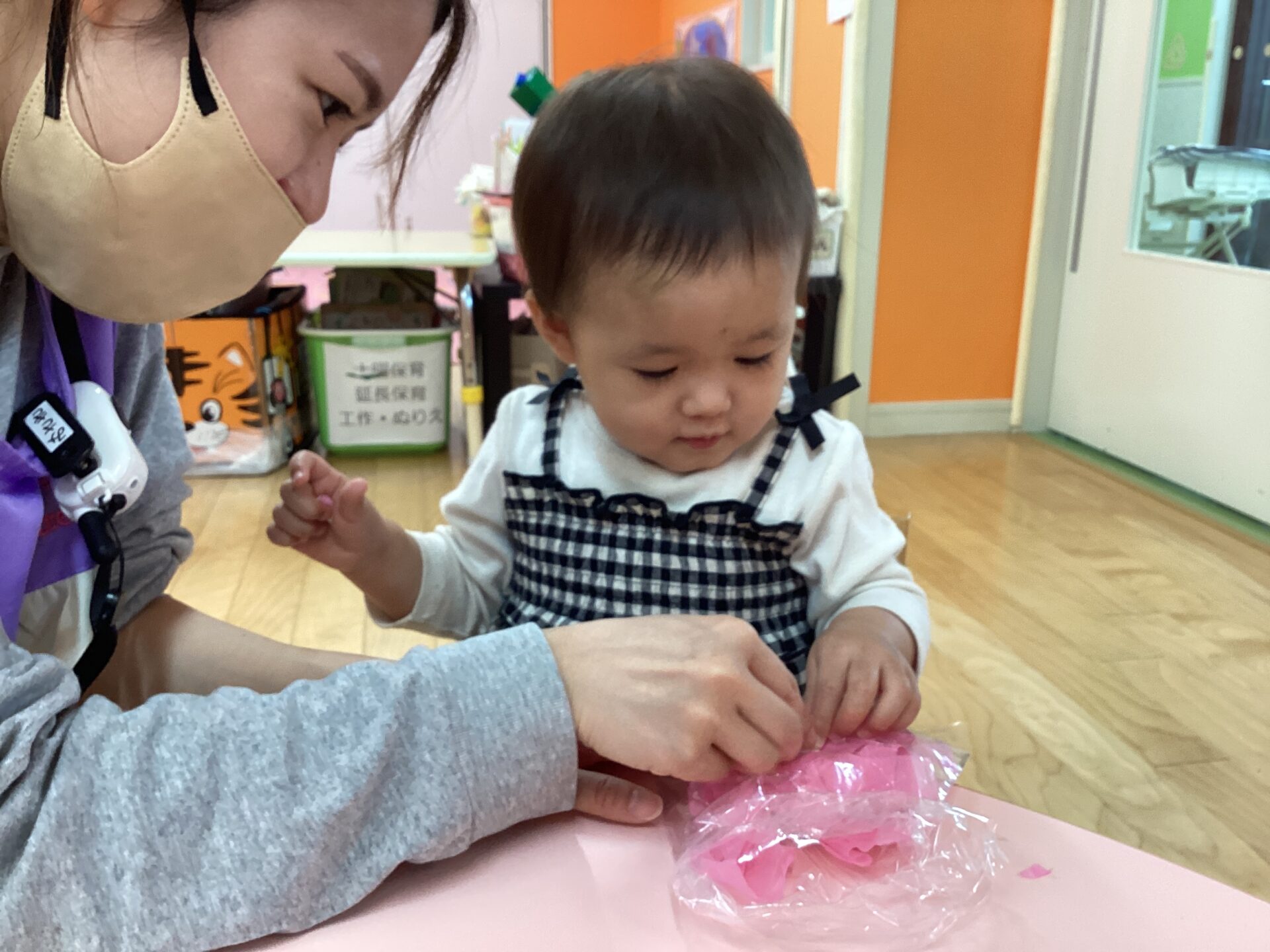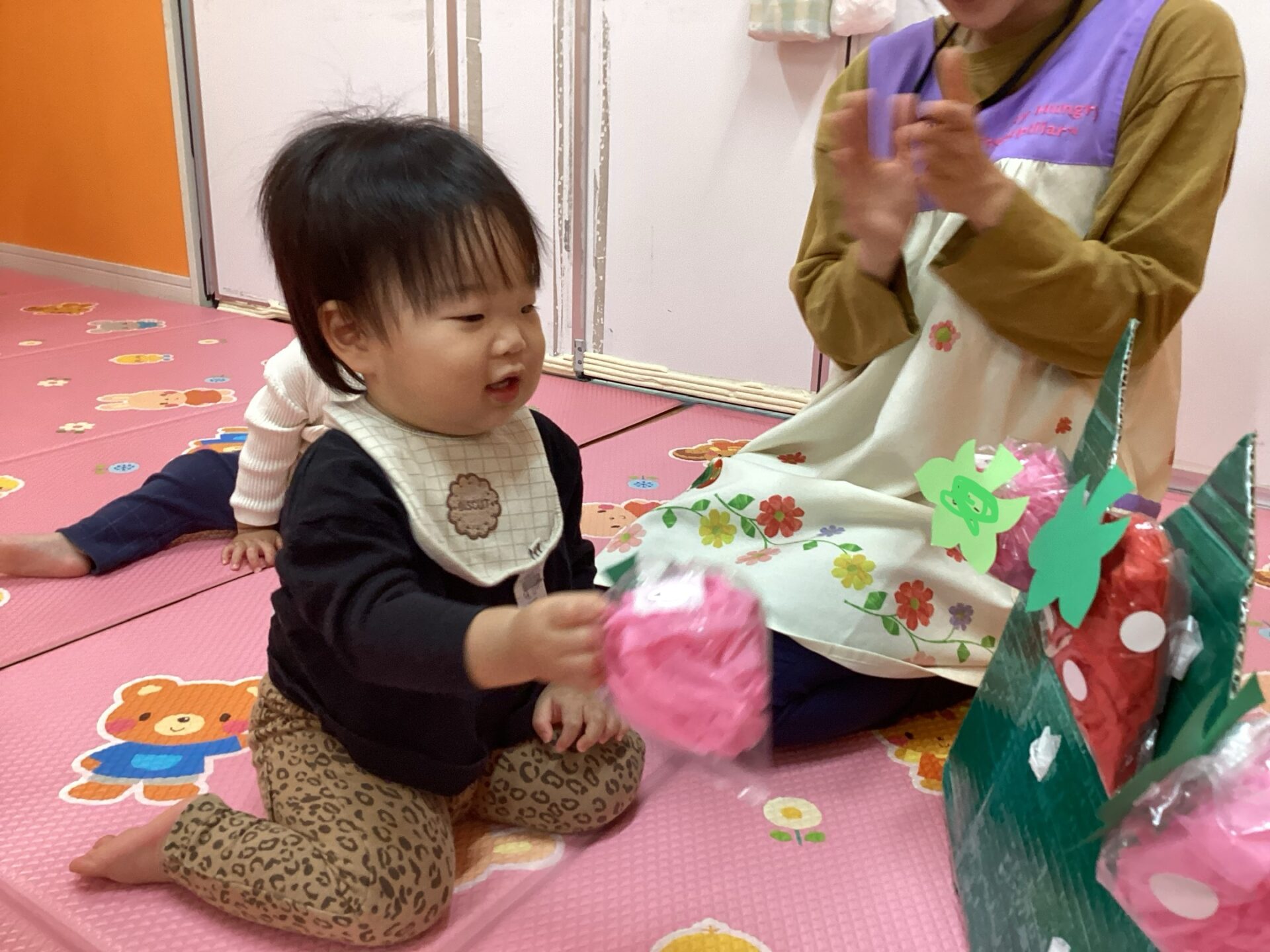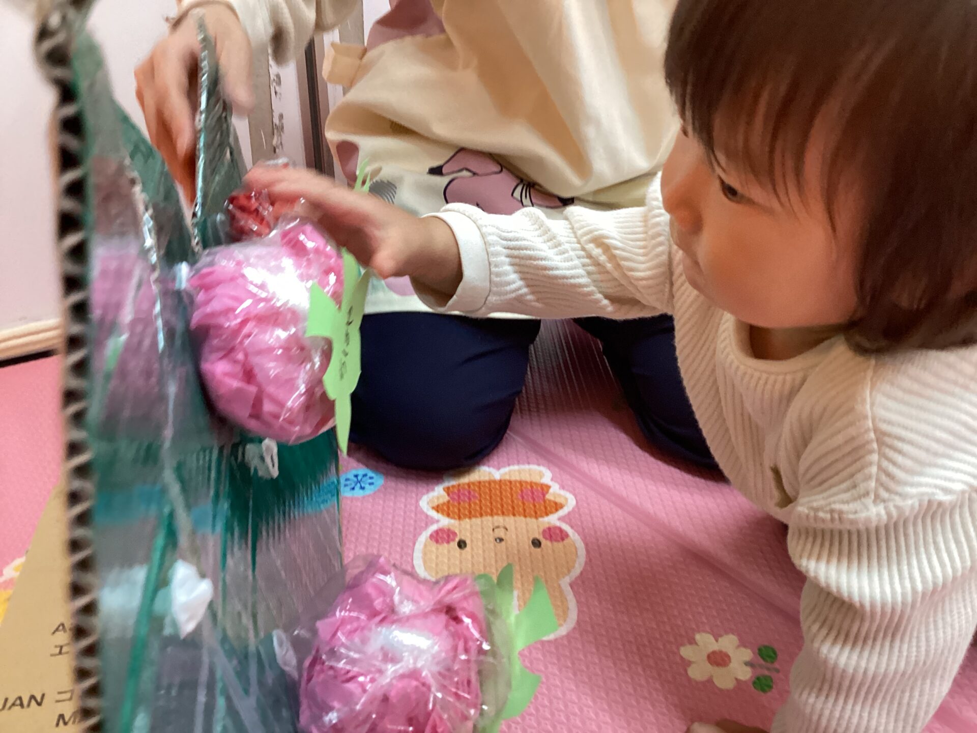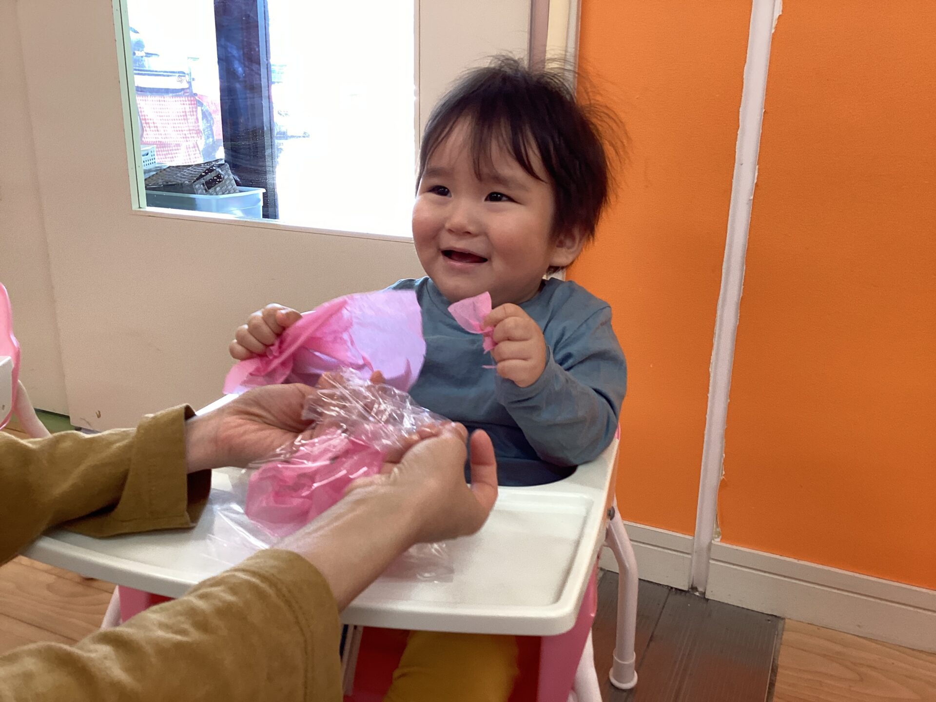 “なんだなんだ?”と興味津々な子ども達はパーテーションに掴まって一生懸命手を伸ばしていました😍
