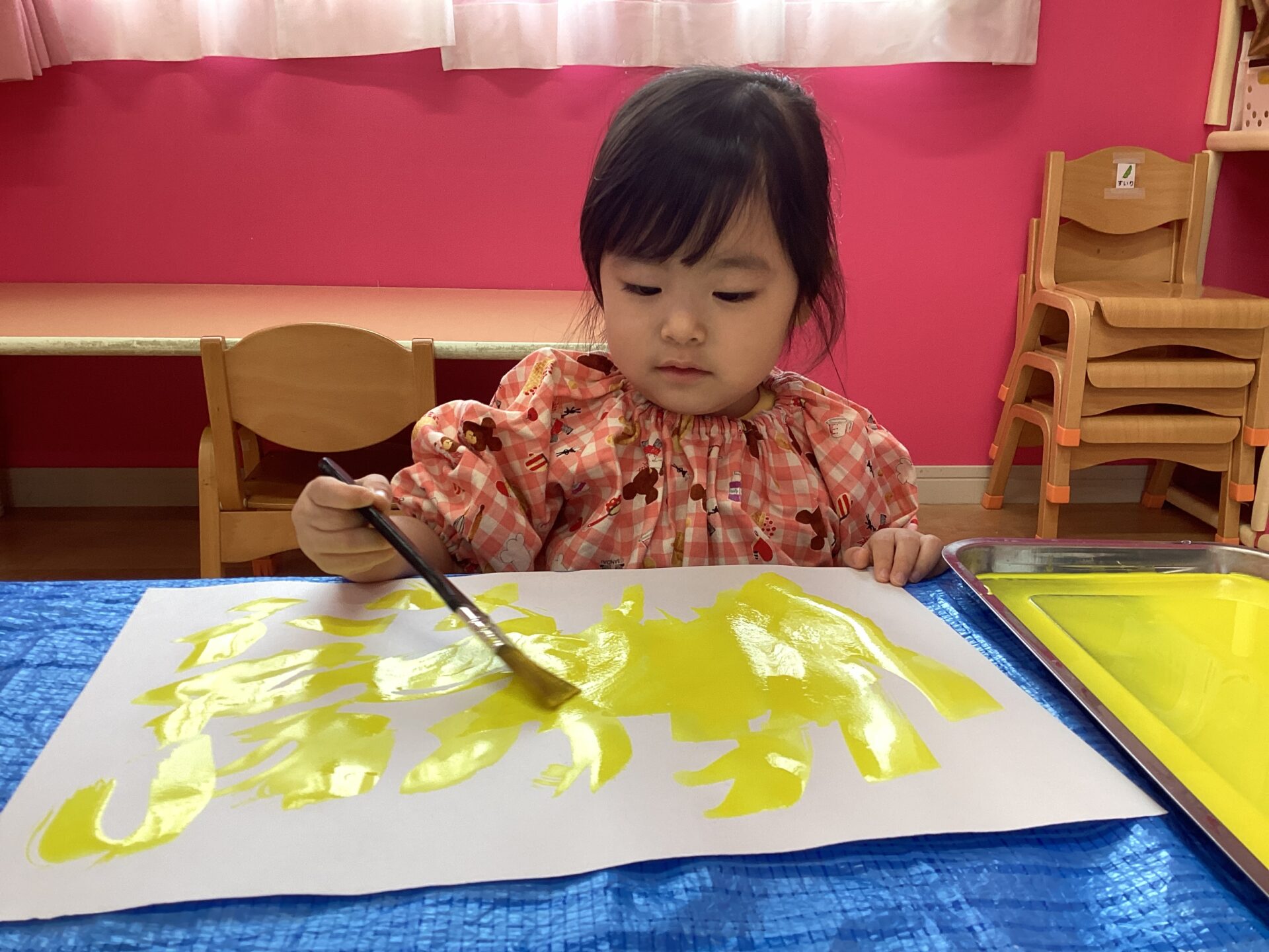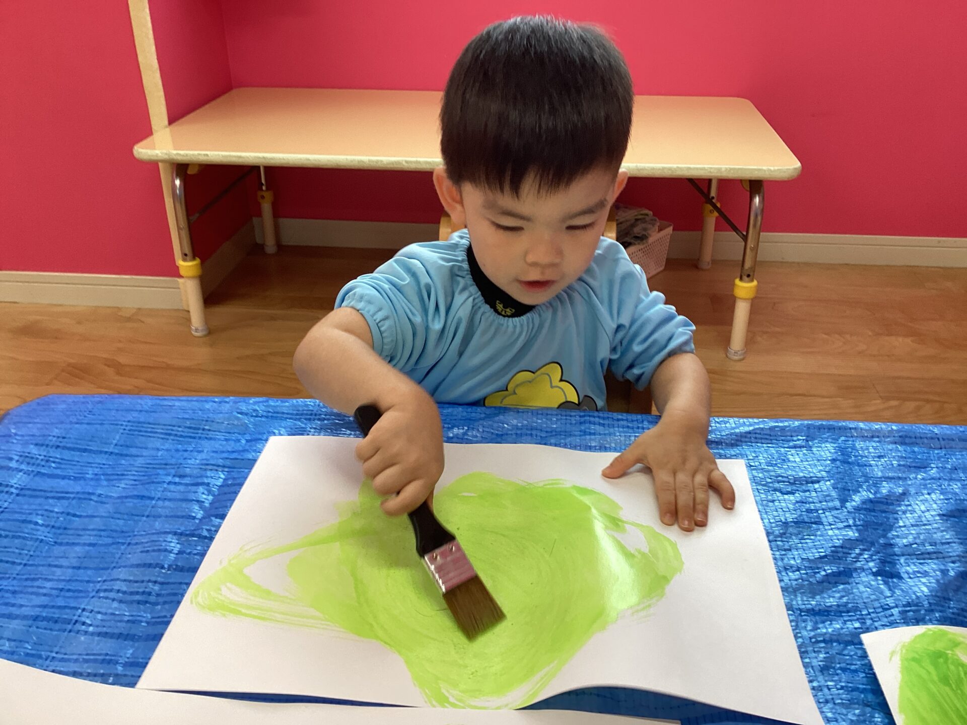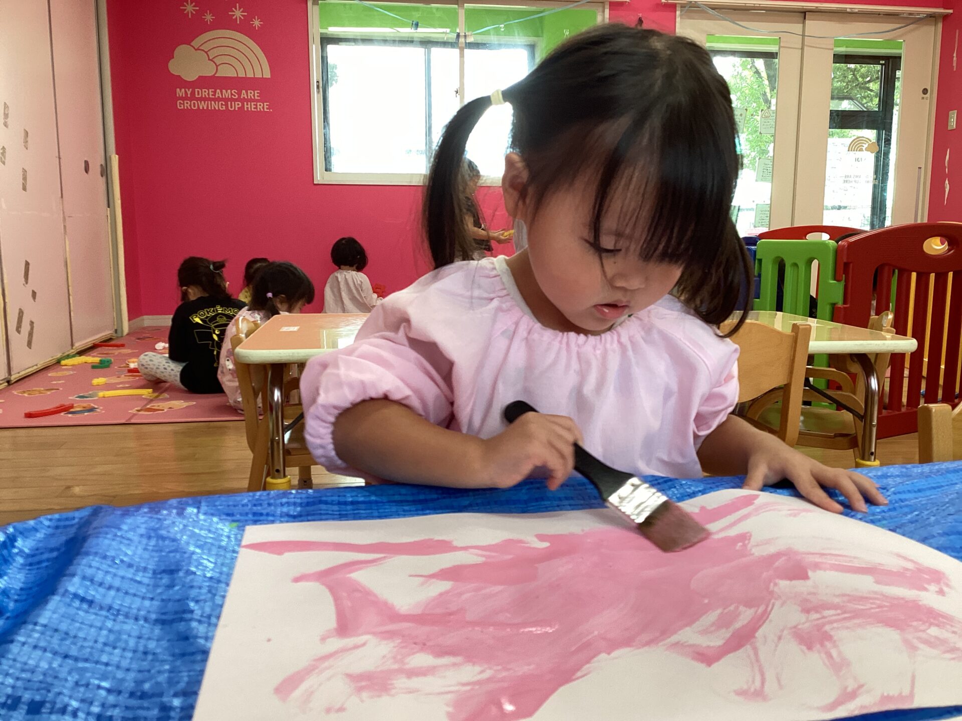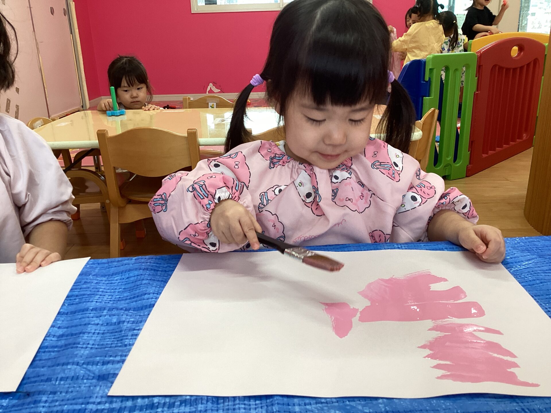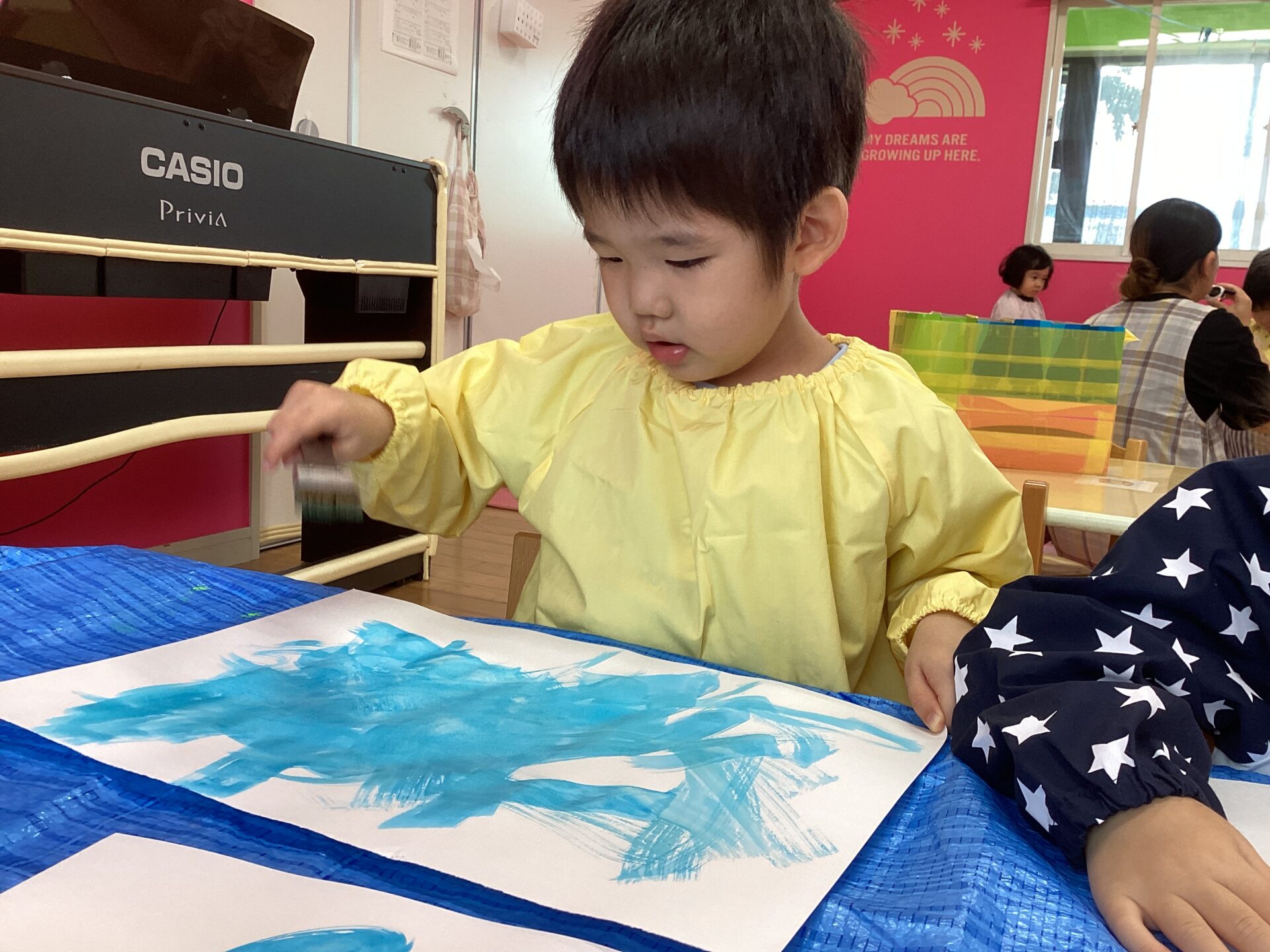 ダイナミックに筆を動かしたりと、思い思いに絵の具のシロップを塗り広げていました😊