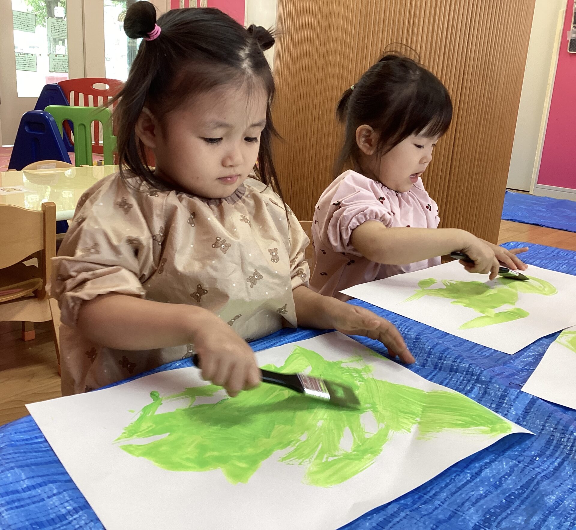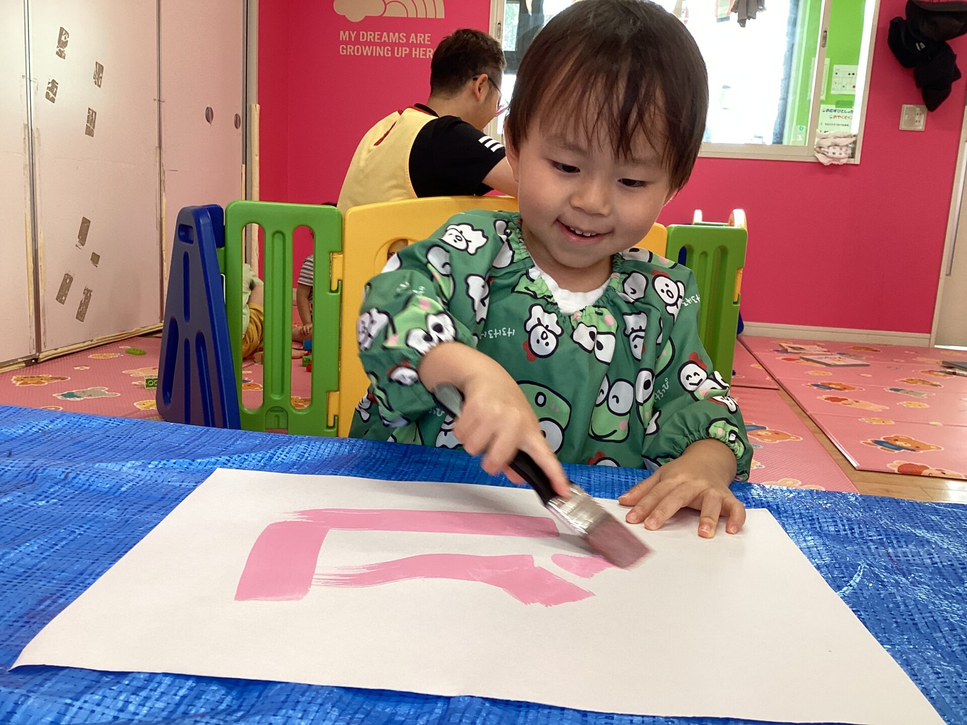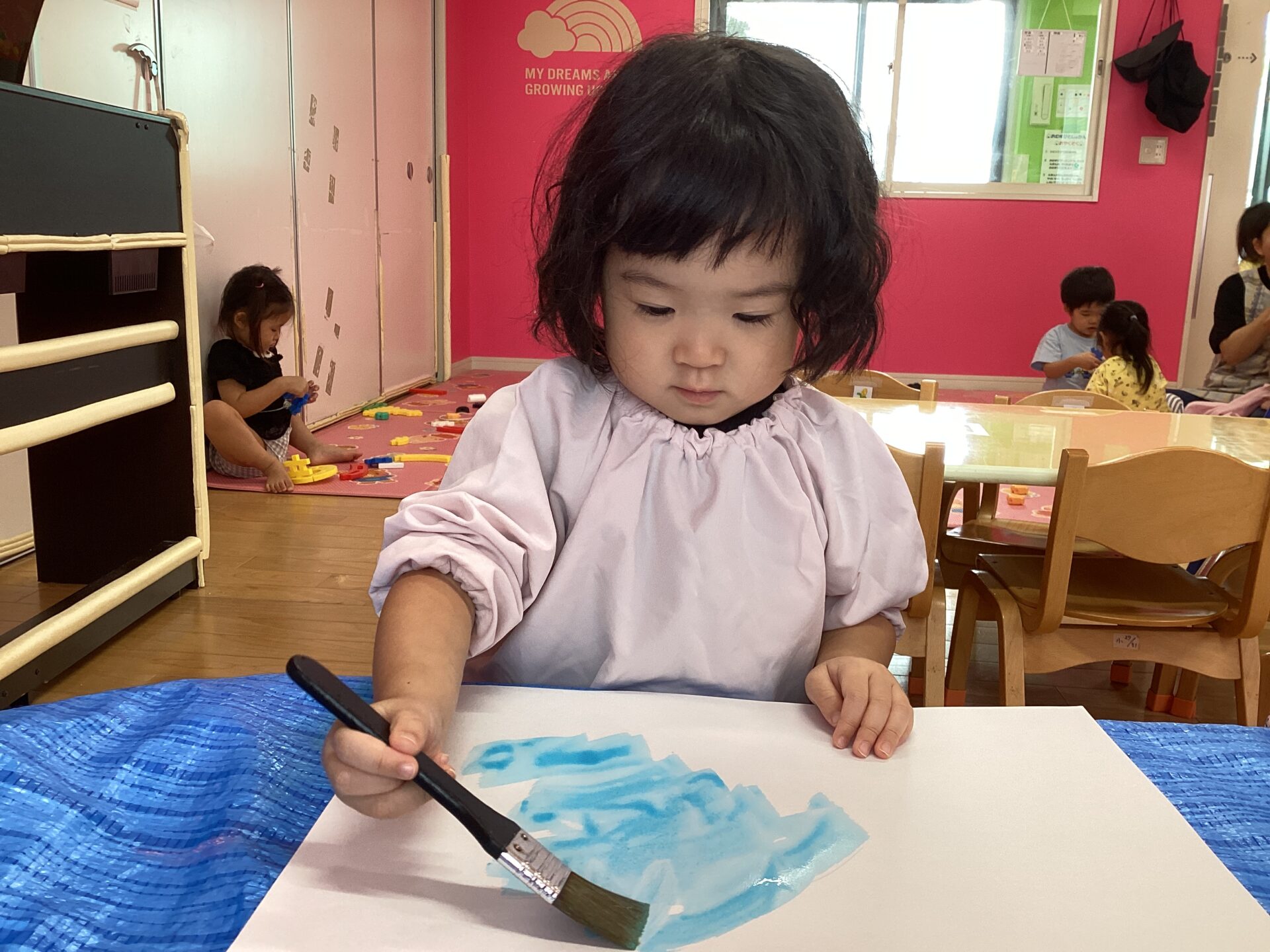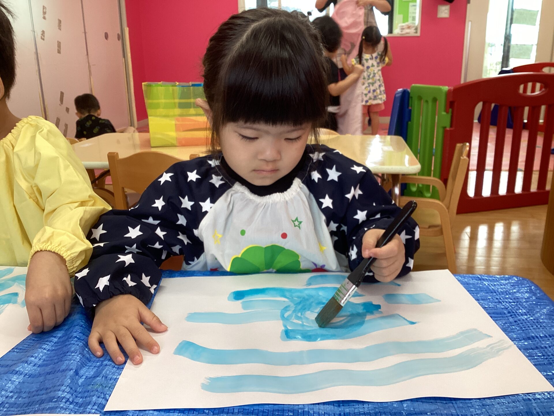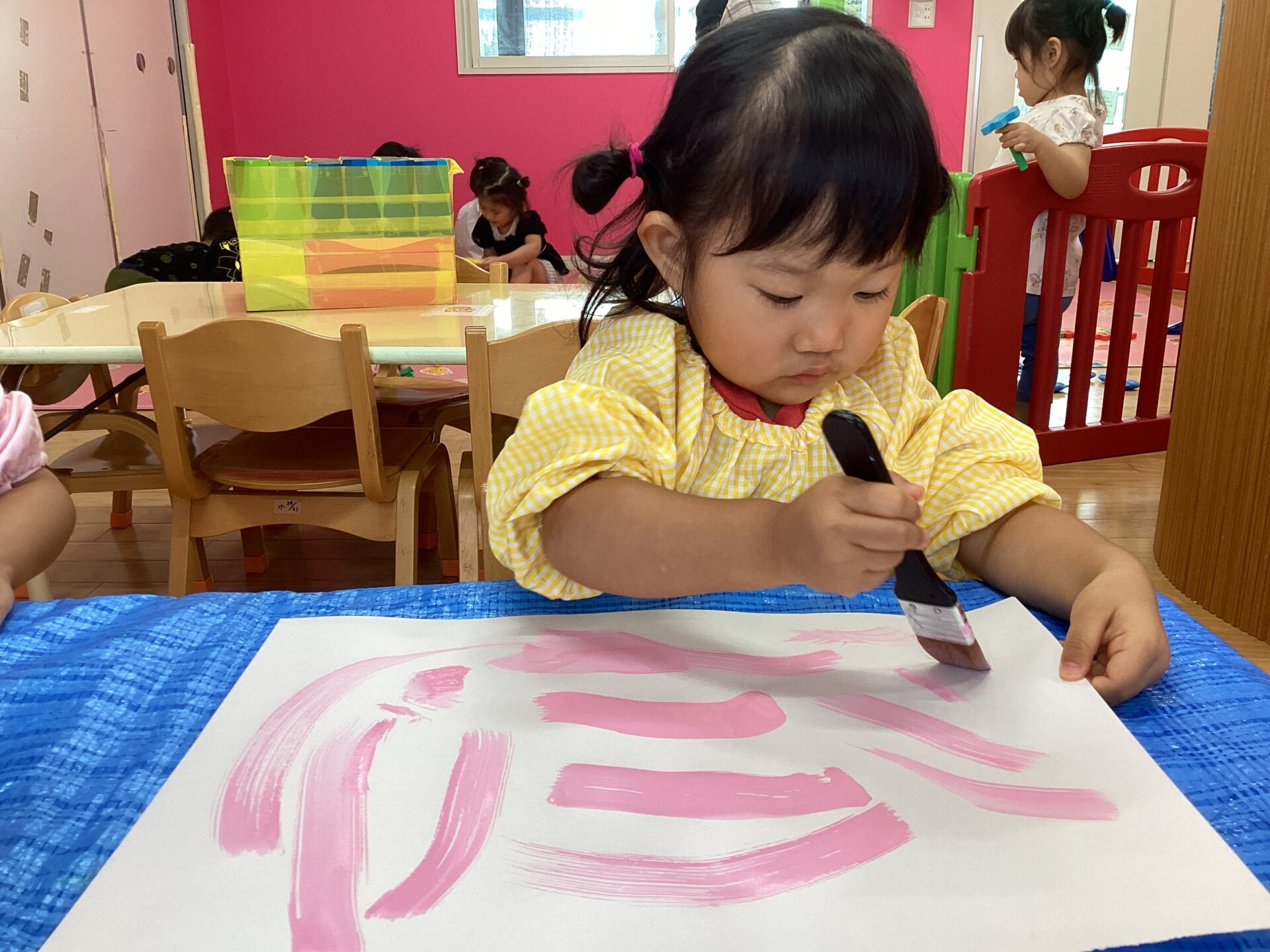 ダイナミックに筆を動かしたりと、思い思いに絵の具のシロップを塗り広げていました😊