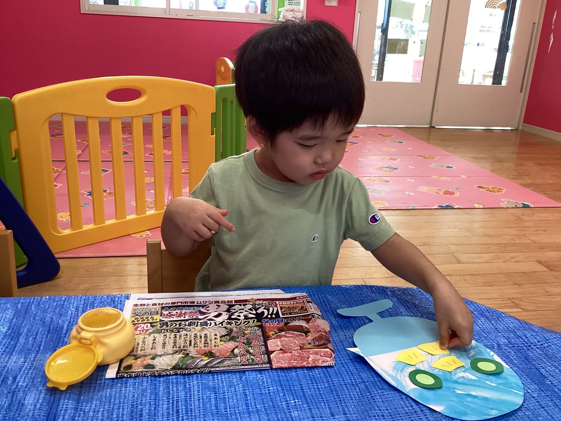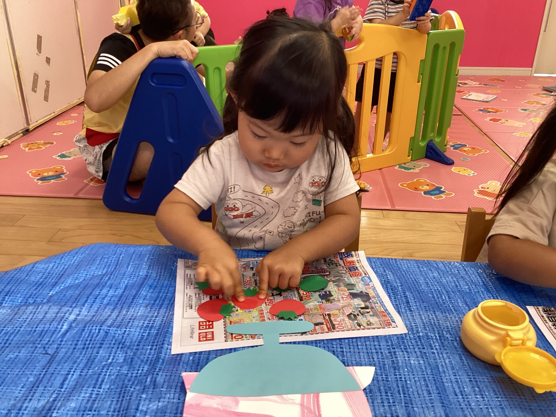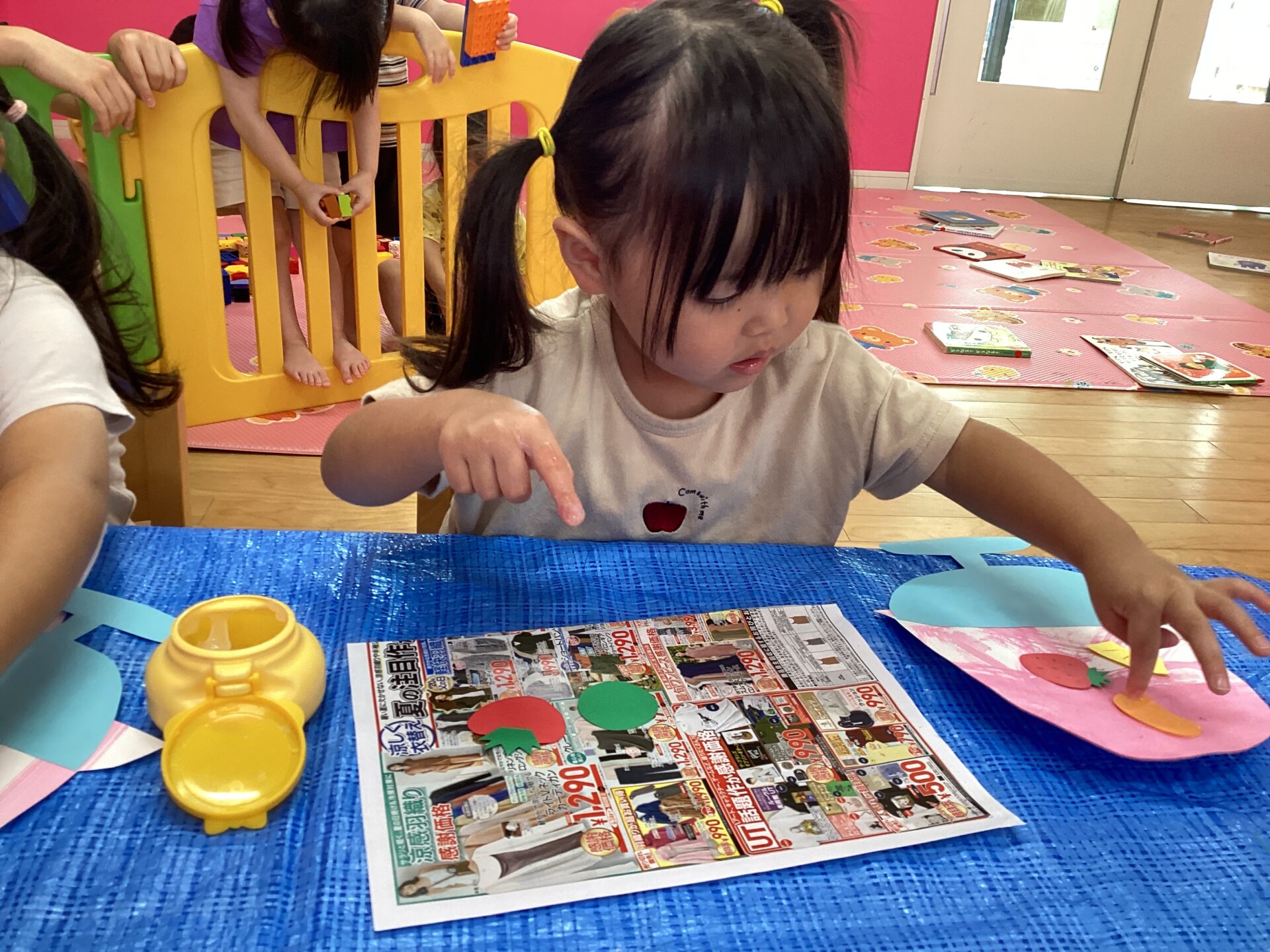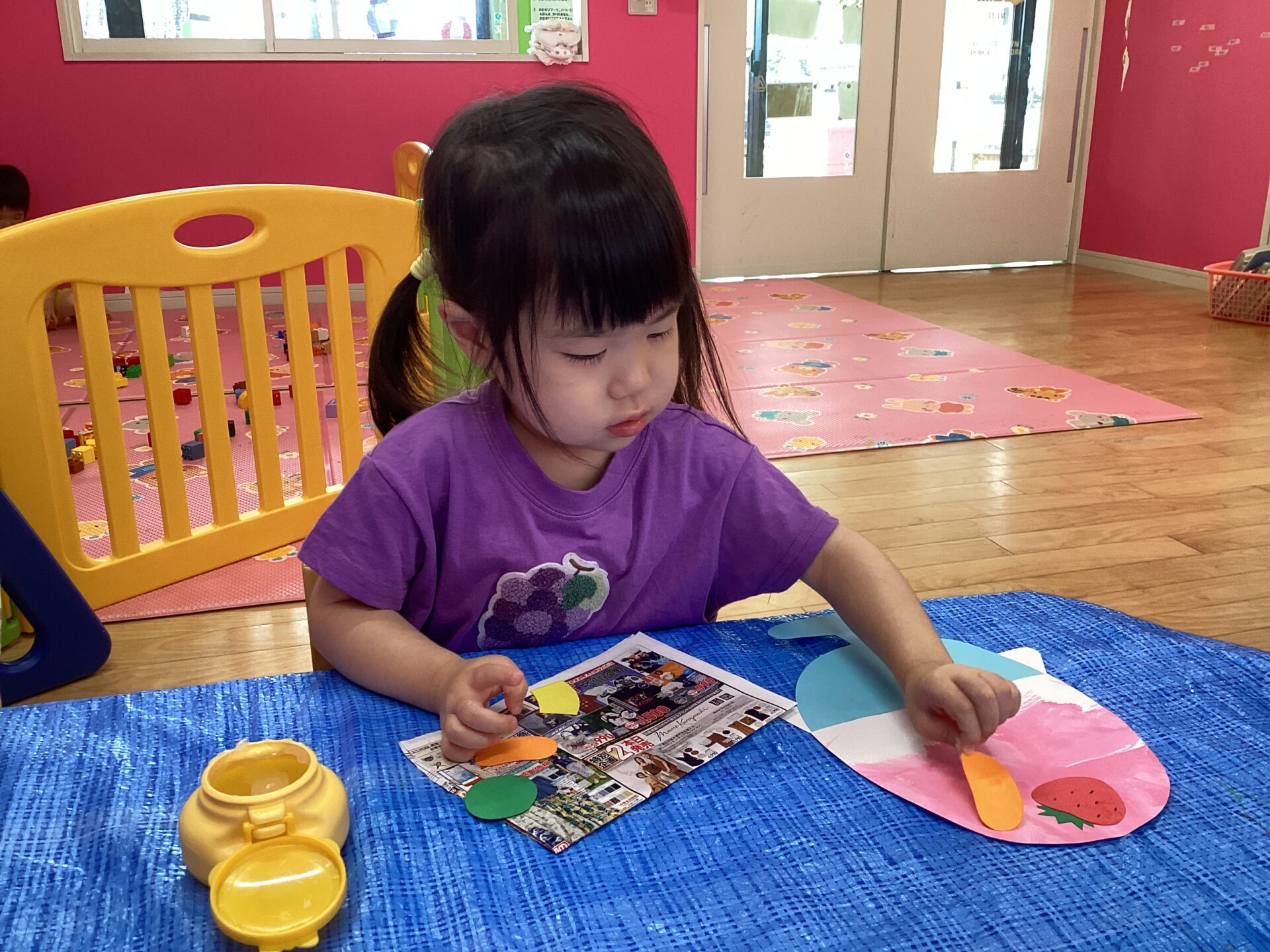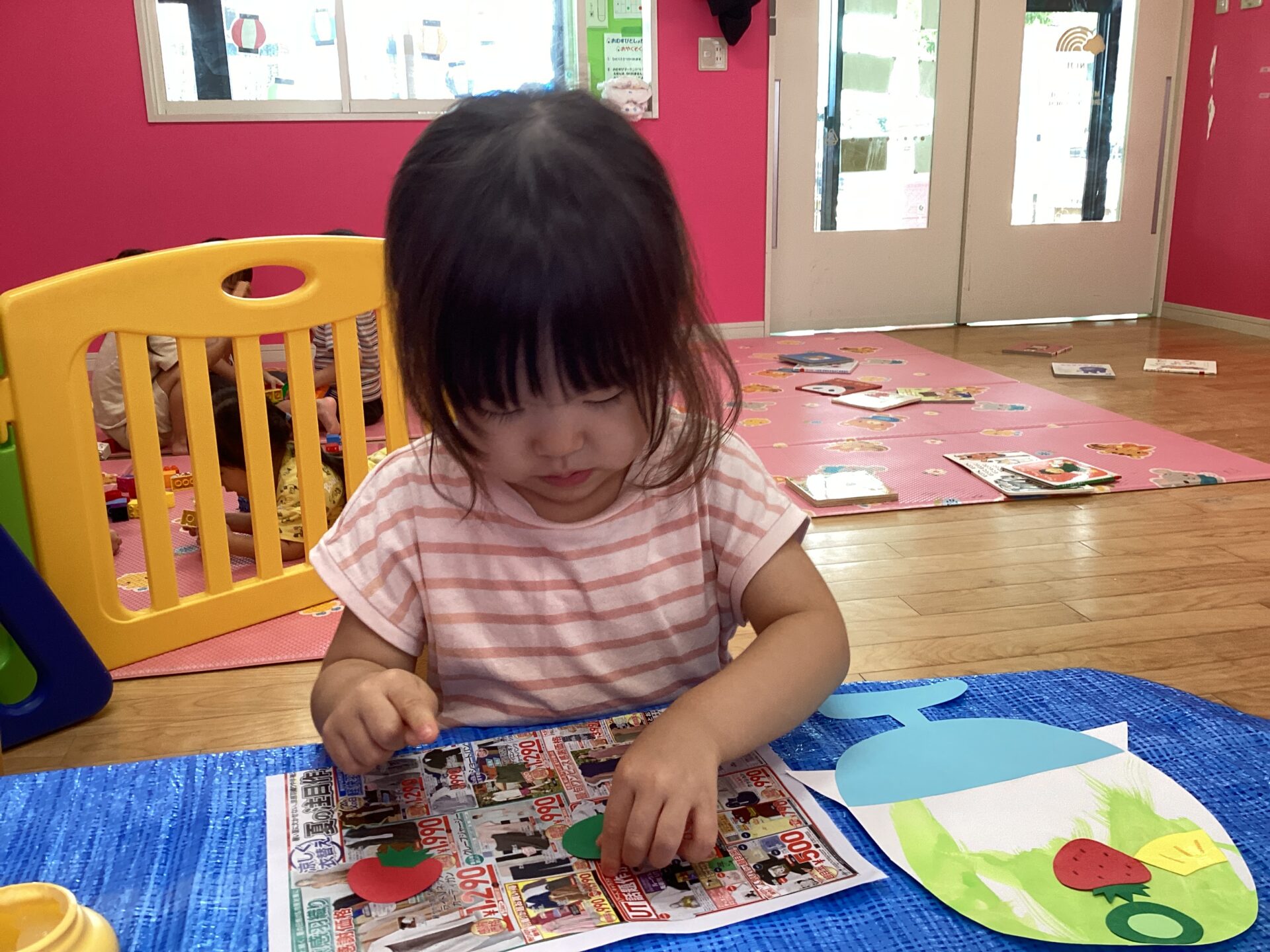 いちご🍓、キウイ🥝、みかん🍊、パイナップル🍍の中から好きな物を選んで、のりで貼りました✨