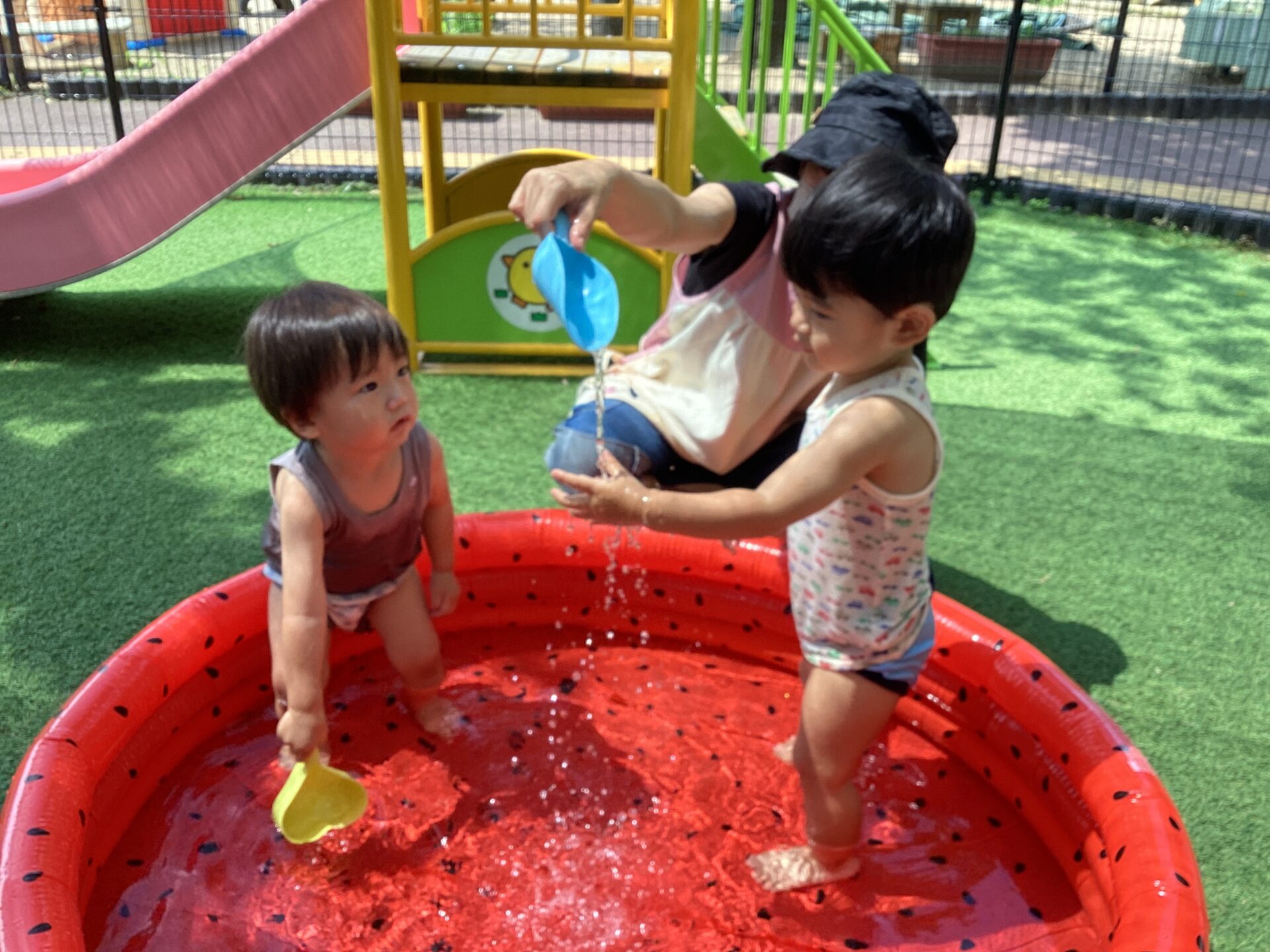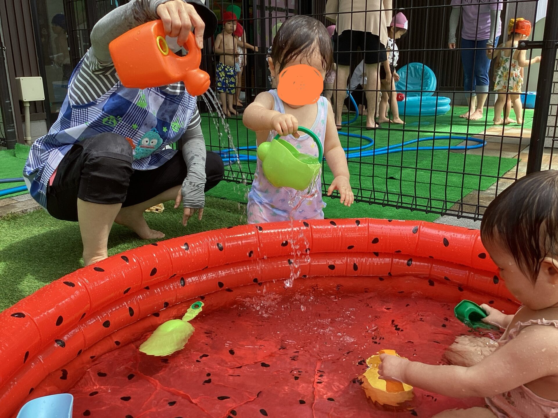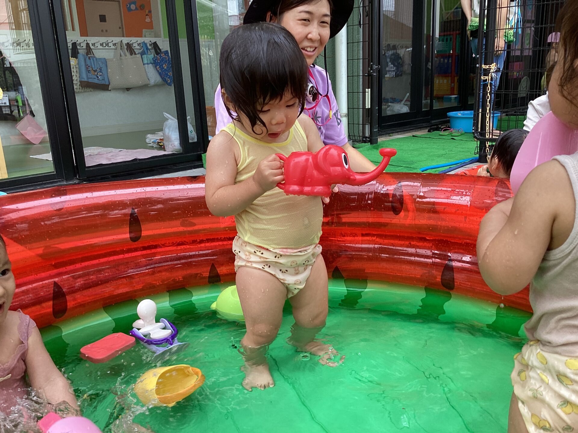”お水だいすき~💓”なお友達が多く、全身ずぶ濡れになって楽しんでいる姿がとても印象的でした。