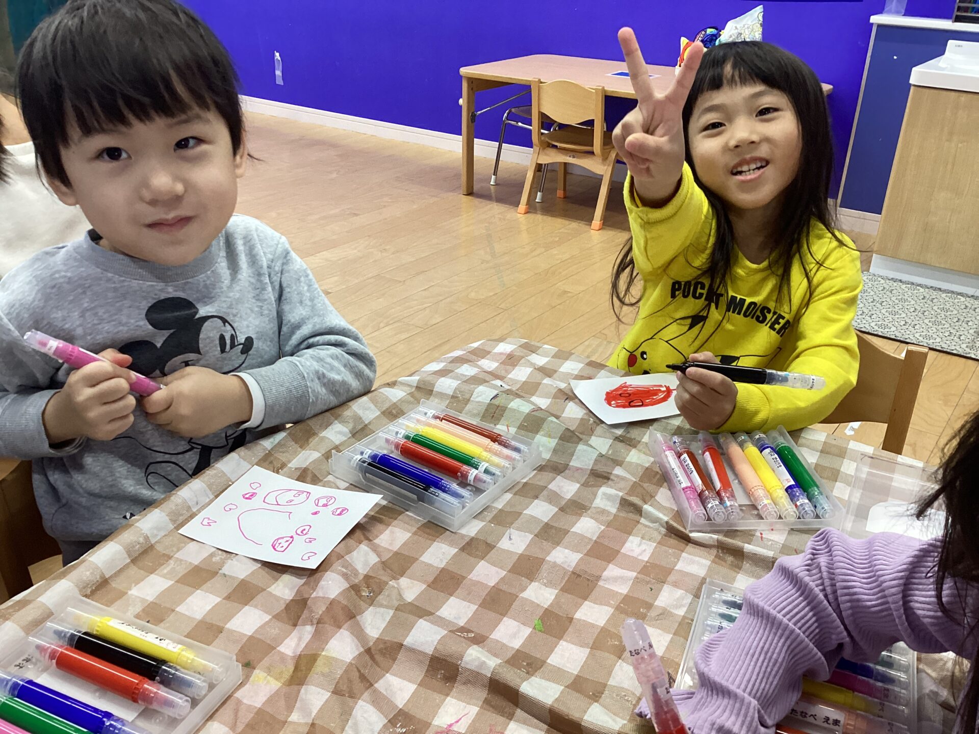 子ども達なりに平和を想い、「にこにこの笑顔」や「太陽」、「ハート」など明るい物を連想させて描いていましたよ。