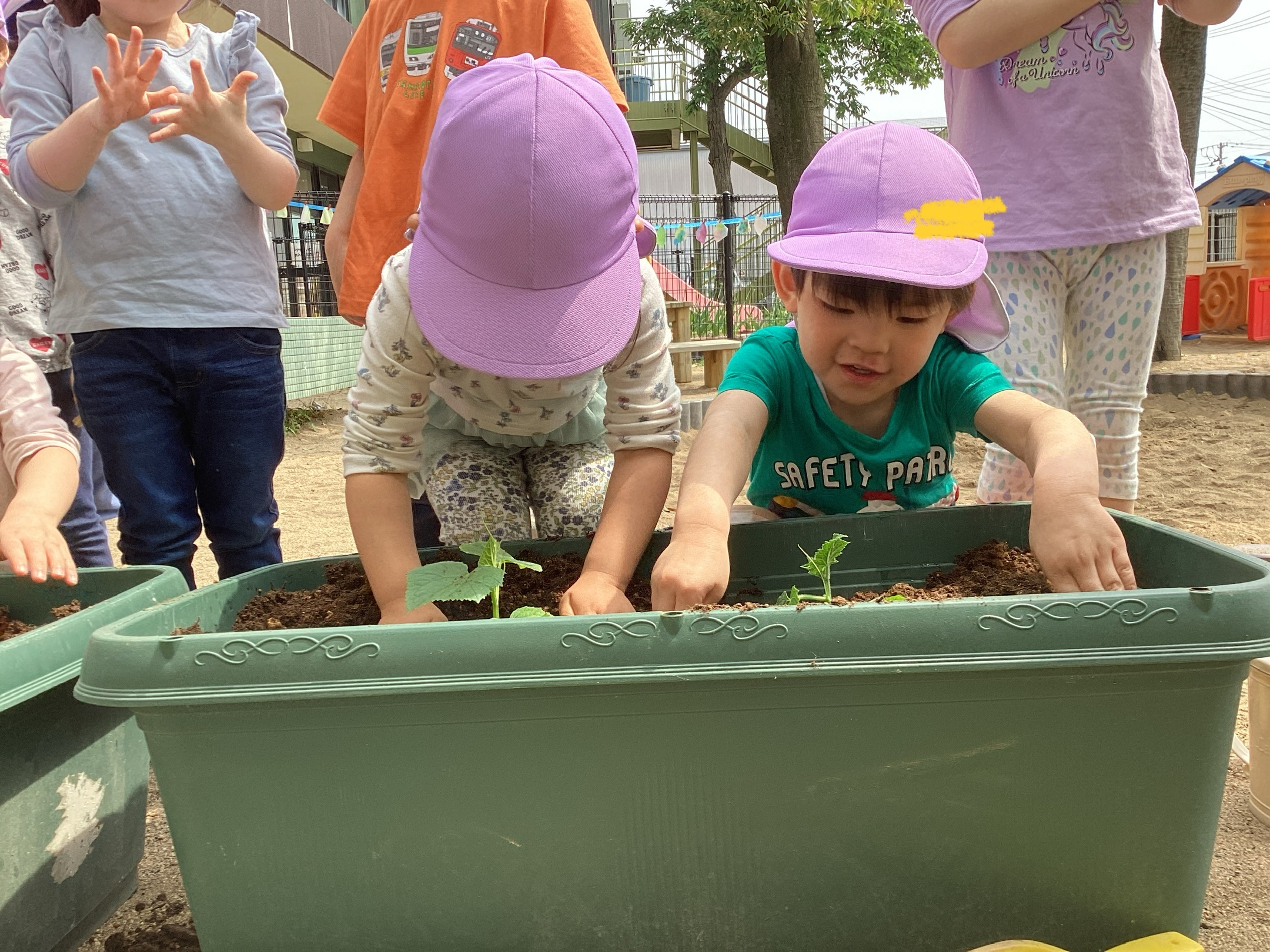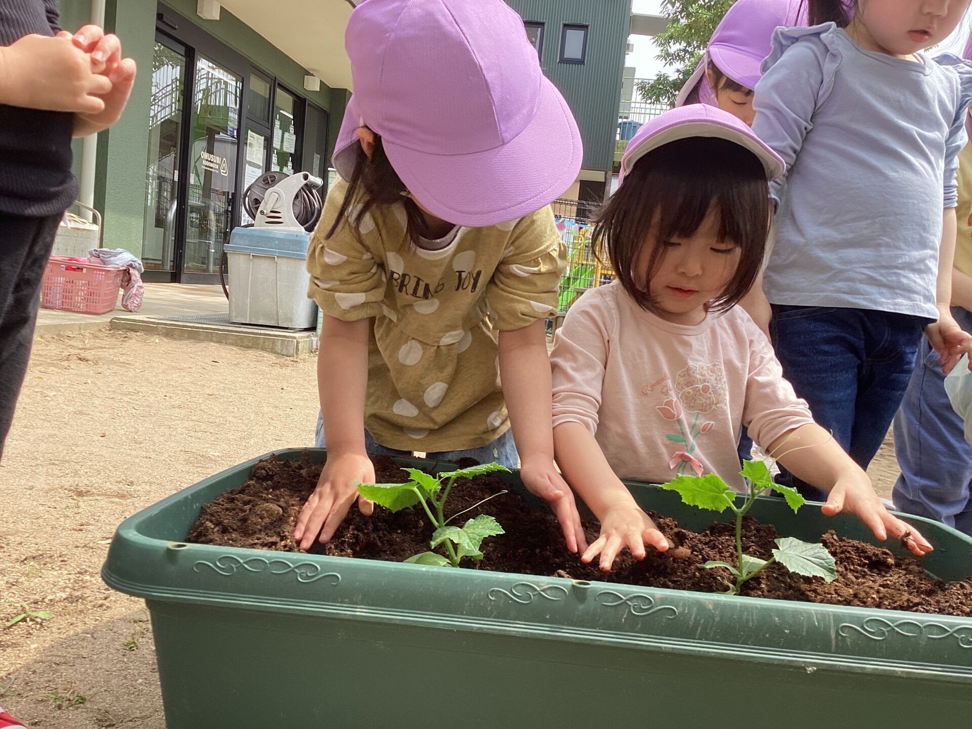ゆきぐみさんは、5月にきゅうりの苗を植えました!!