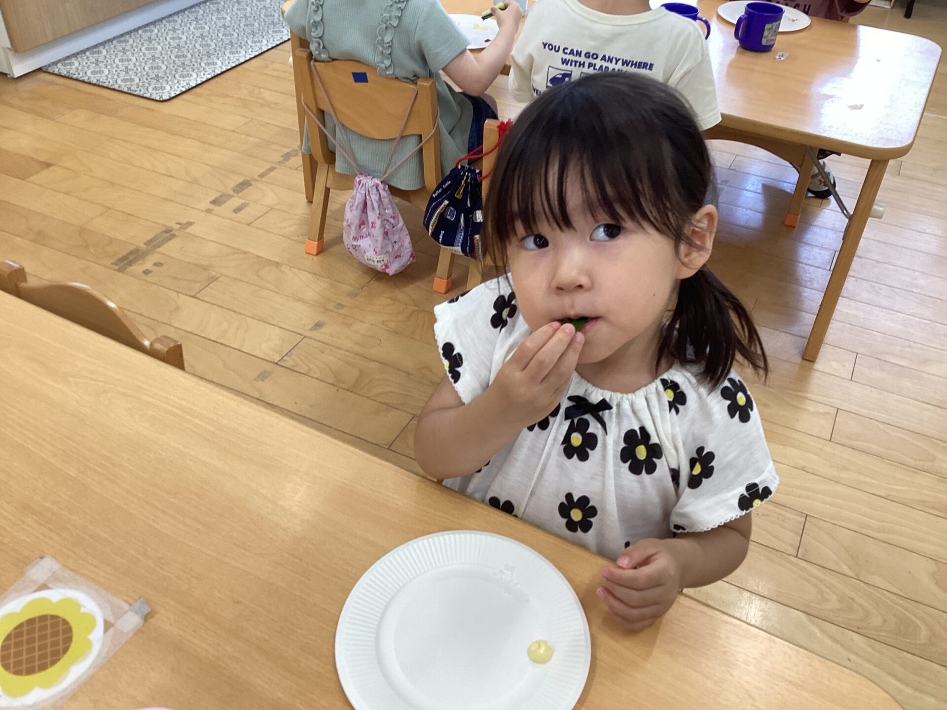 第二弾では、そらぐみさん・つきぐみさんにもおすそ分けをして食べてもらいました(*^^*)