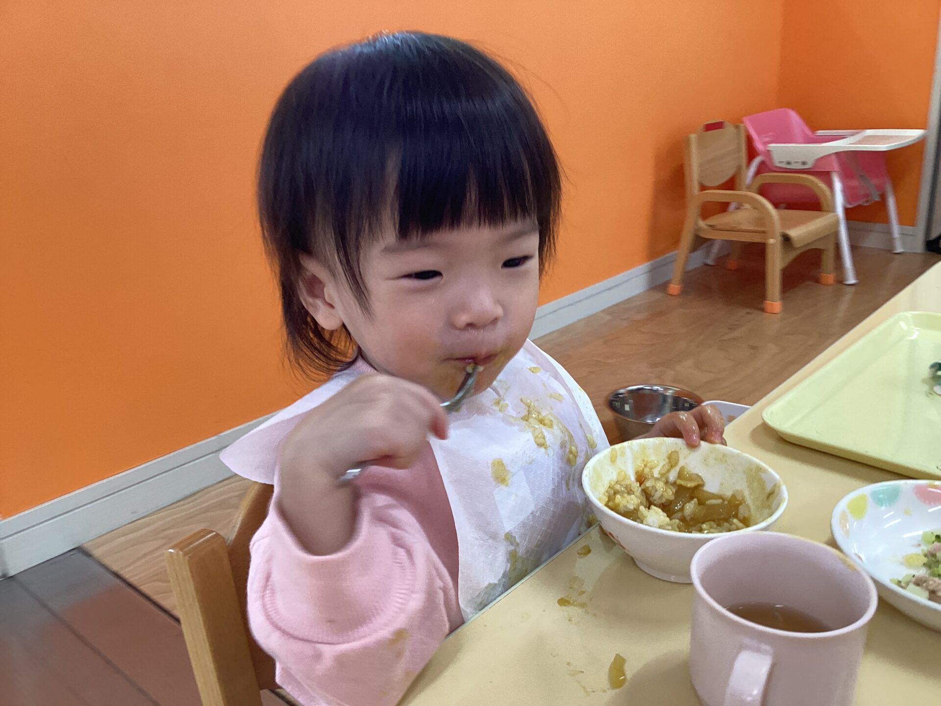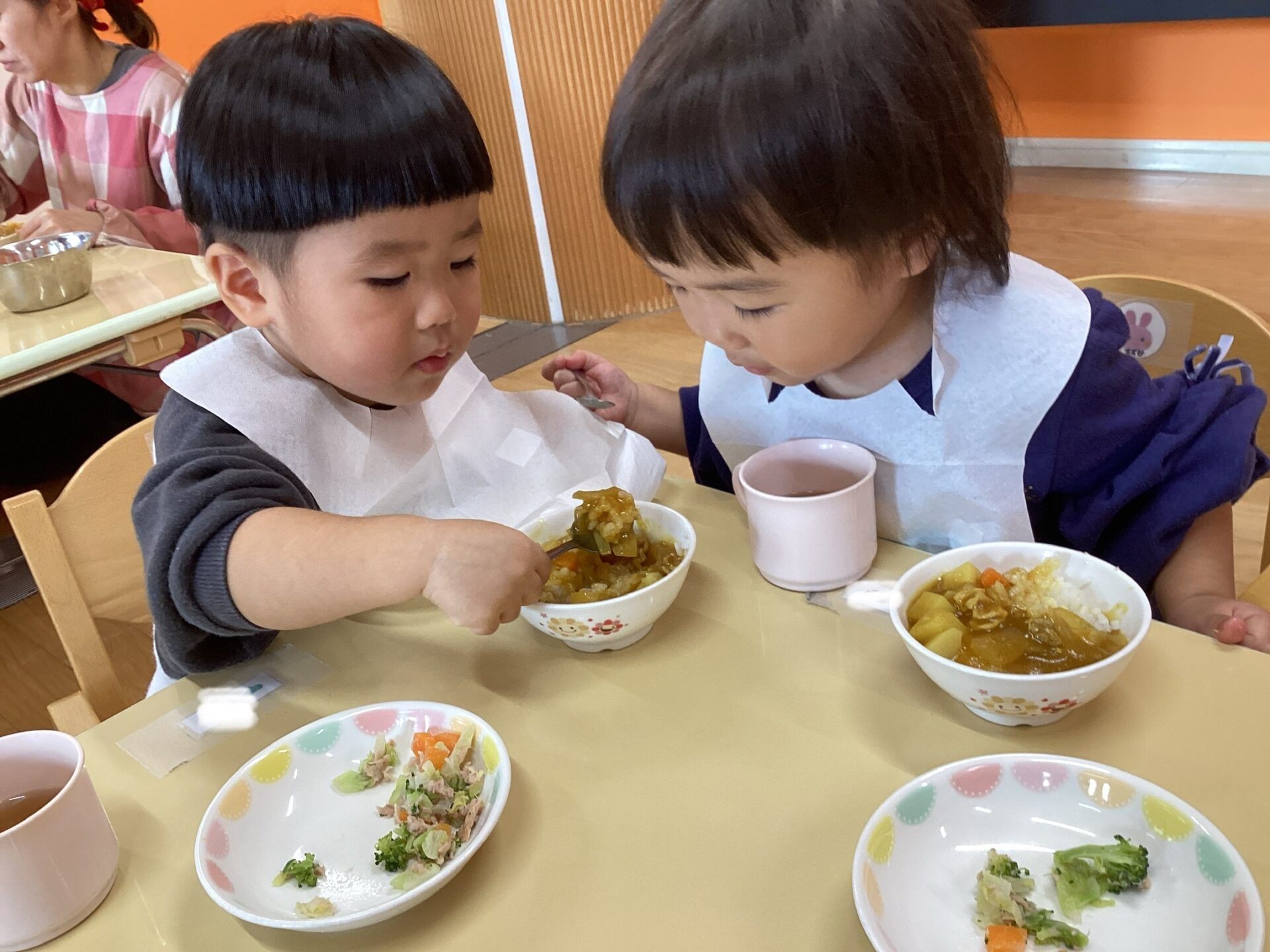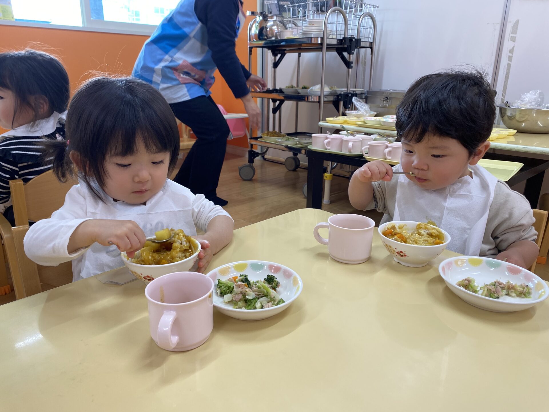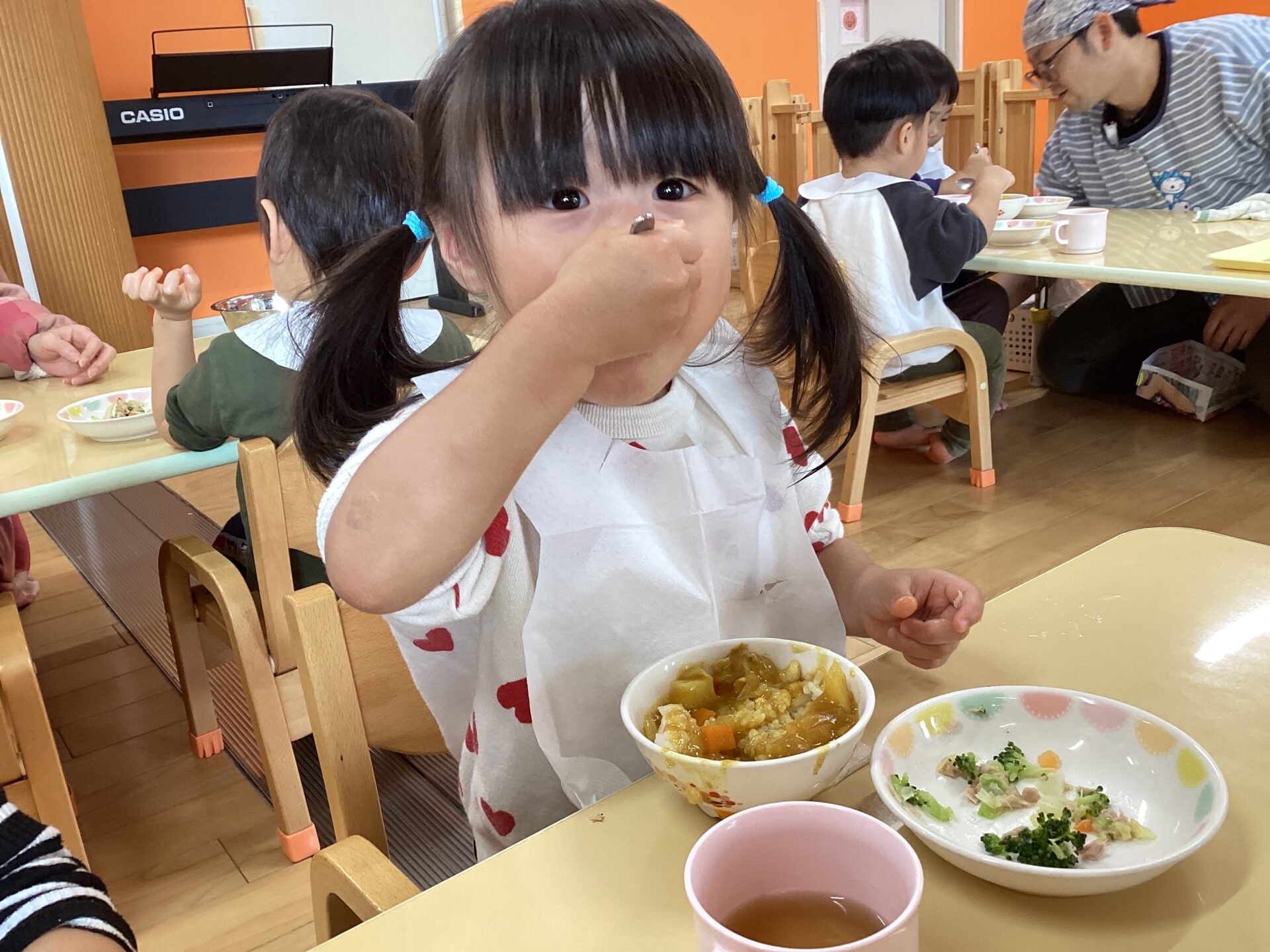 次の日の給食はカレーでした🍛✨カレーの中にみんなでむいた玉ねぎが入っています😊