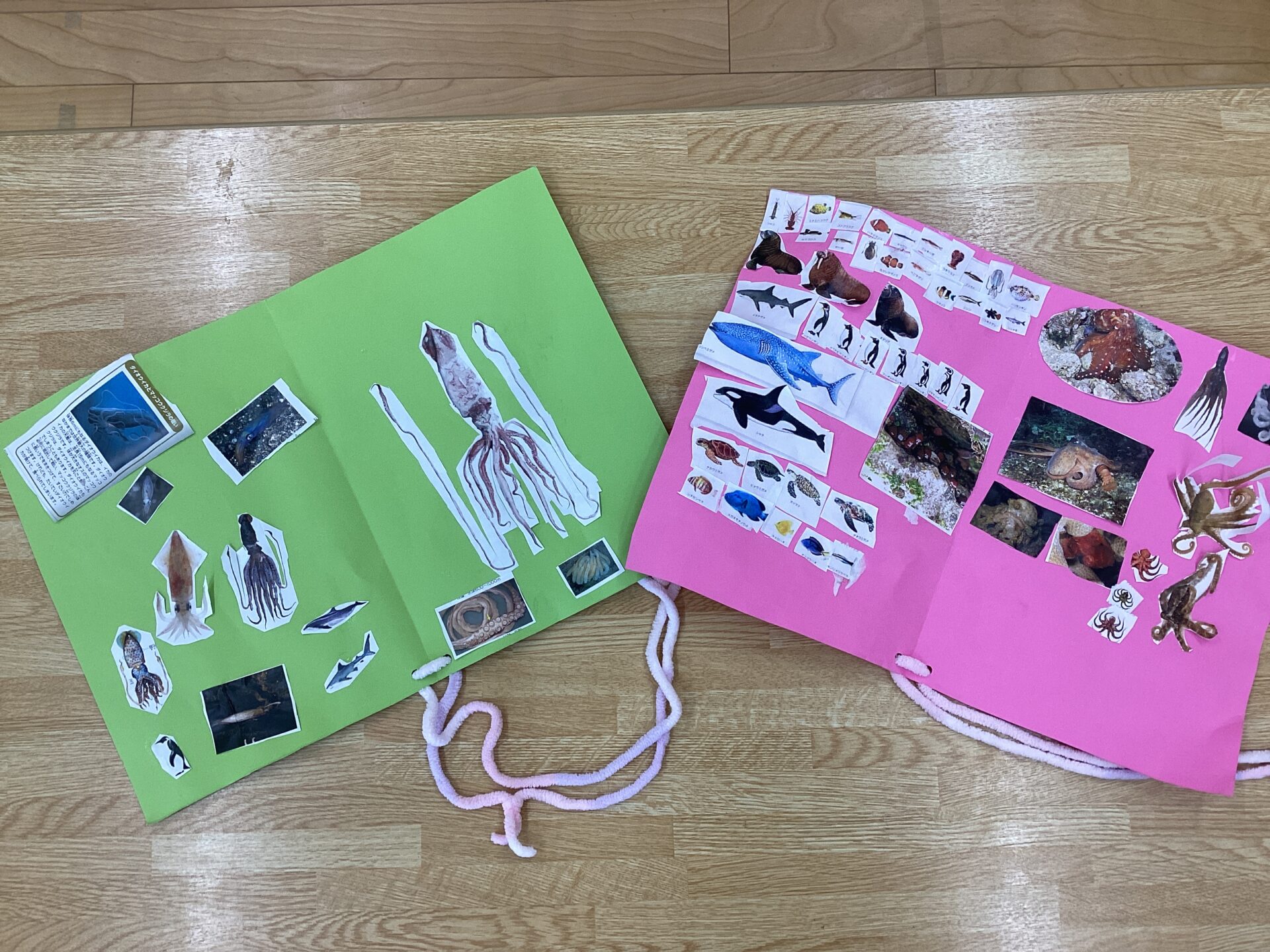 その前に遠足に向けて、子ども達が海の生き物への興味が深まったり、水族館に行く期待感が高まるように図鑑を作れたらと思い、いろいろな海の生き物が載っている物をコピーしておきました。