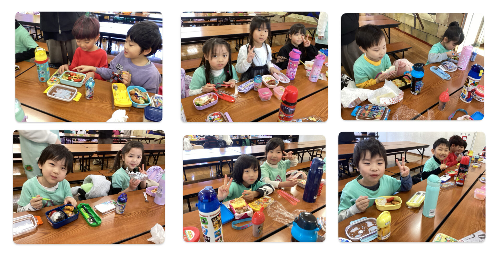 「いただきます」をすると「おいしい〜😆」「おにぎりだよ」「ぼくはサンドイッチ」などと言いながら、ニコニコ顔でとっても嬉しそうに食べていました!