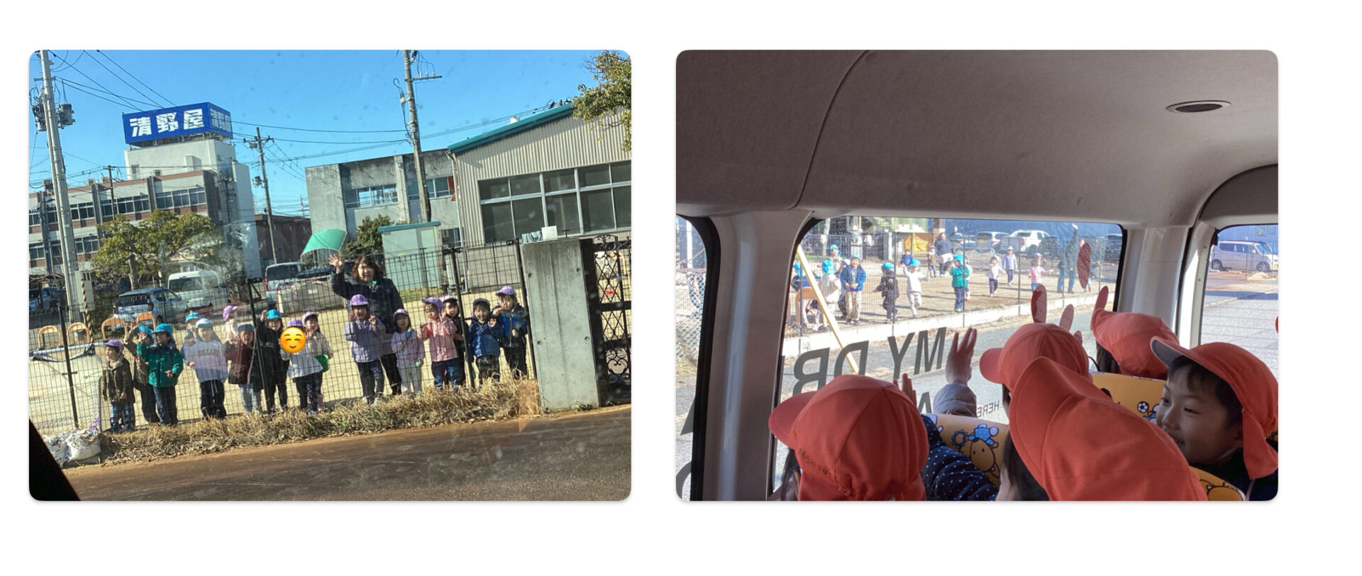 そして、当日はそらぐみさんとゆきぐみさんの「いってらっしゃ〜い☺️」とかわいいお見送りを受けてつきぐみさんんも「いってきま〜す」と元気に出発しました!