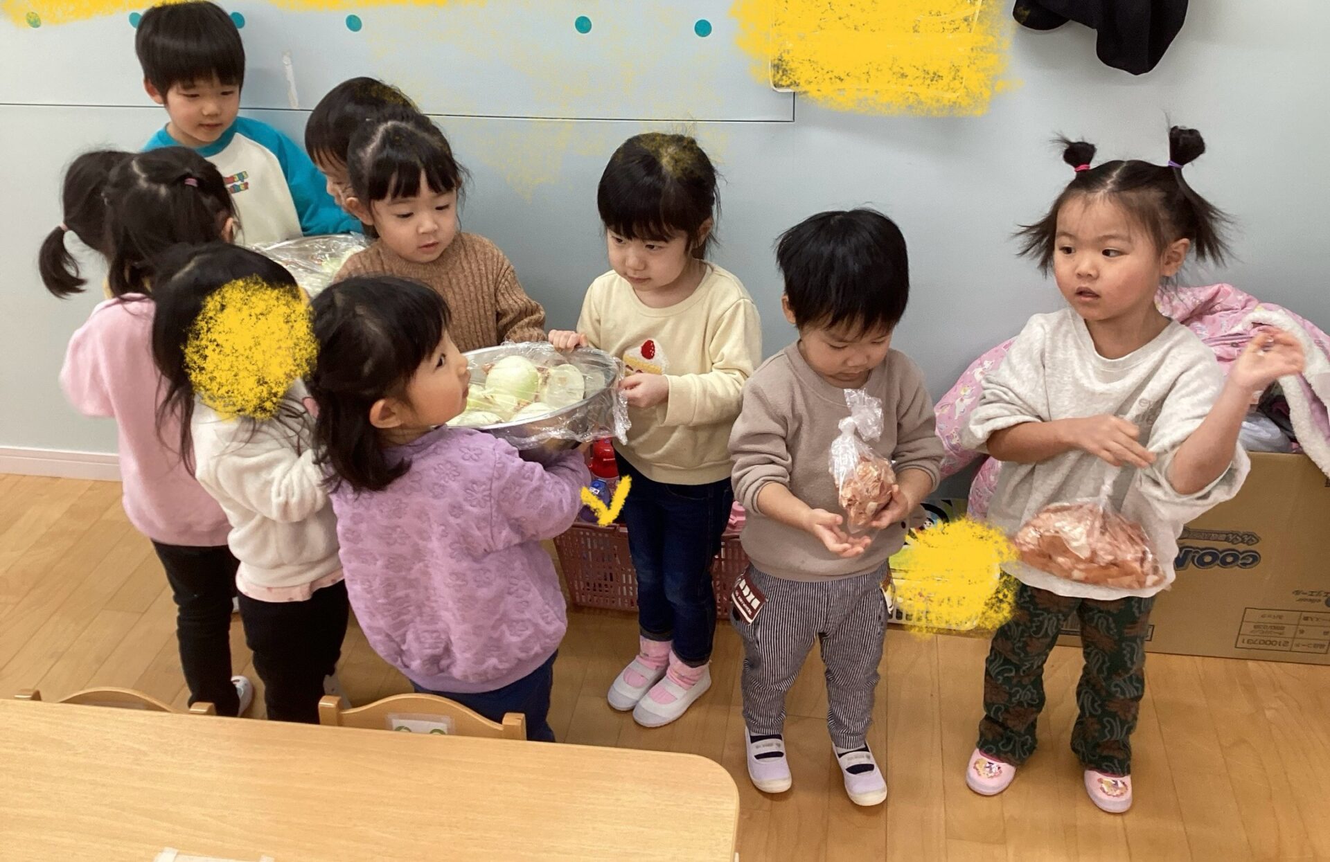 「給食さんのお手伝い〜♪」とにこにこな子どもたち☆