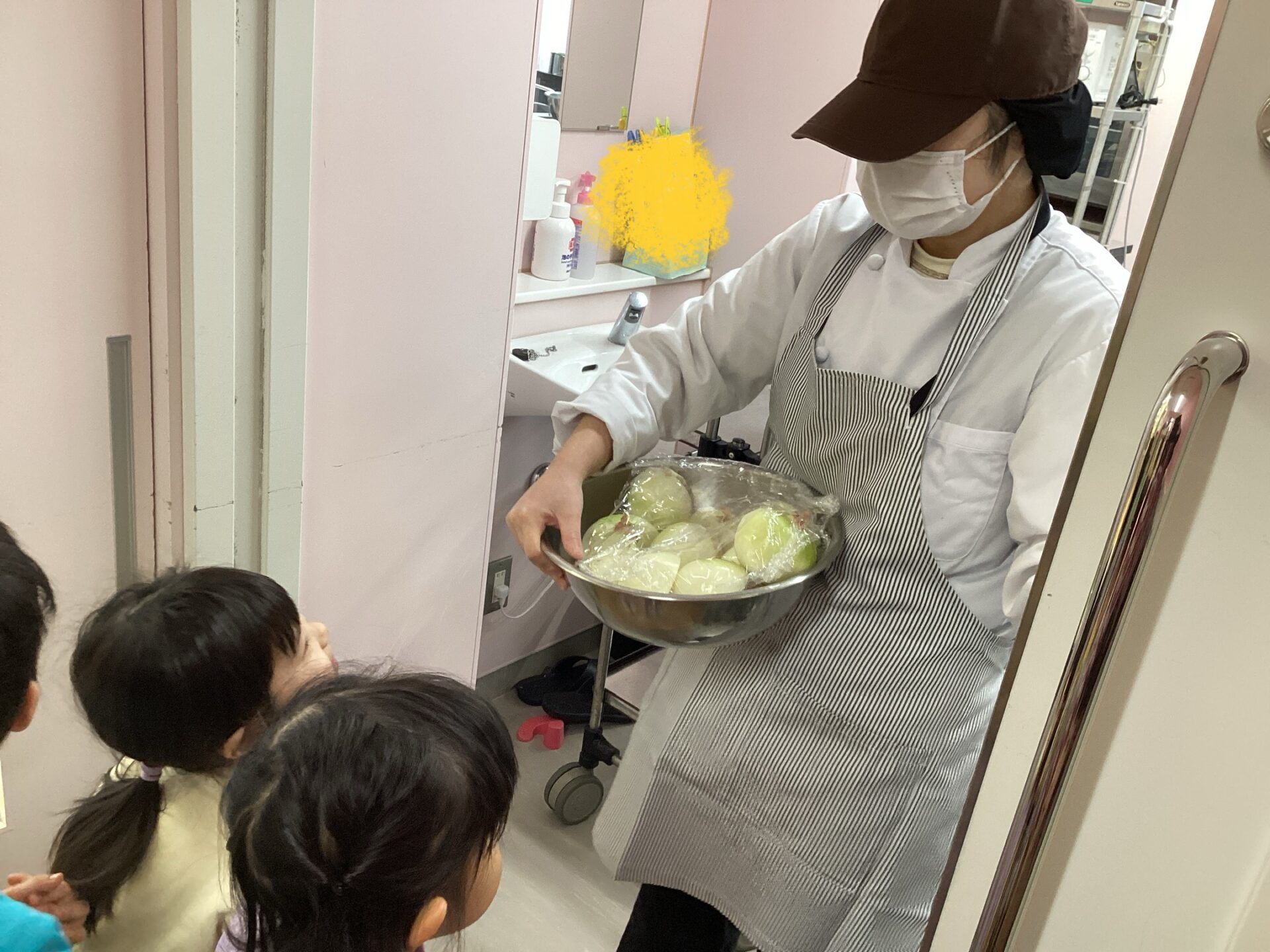 給食室へ玉ねぎ🧅を持って行きました♪